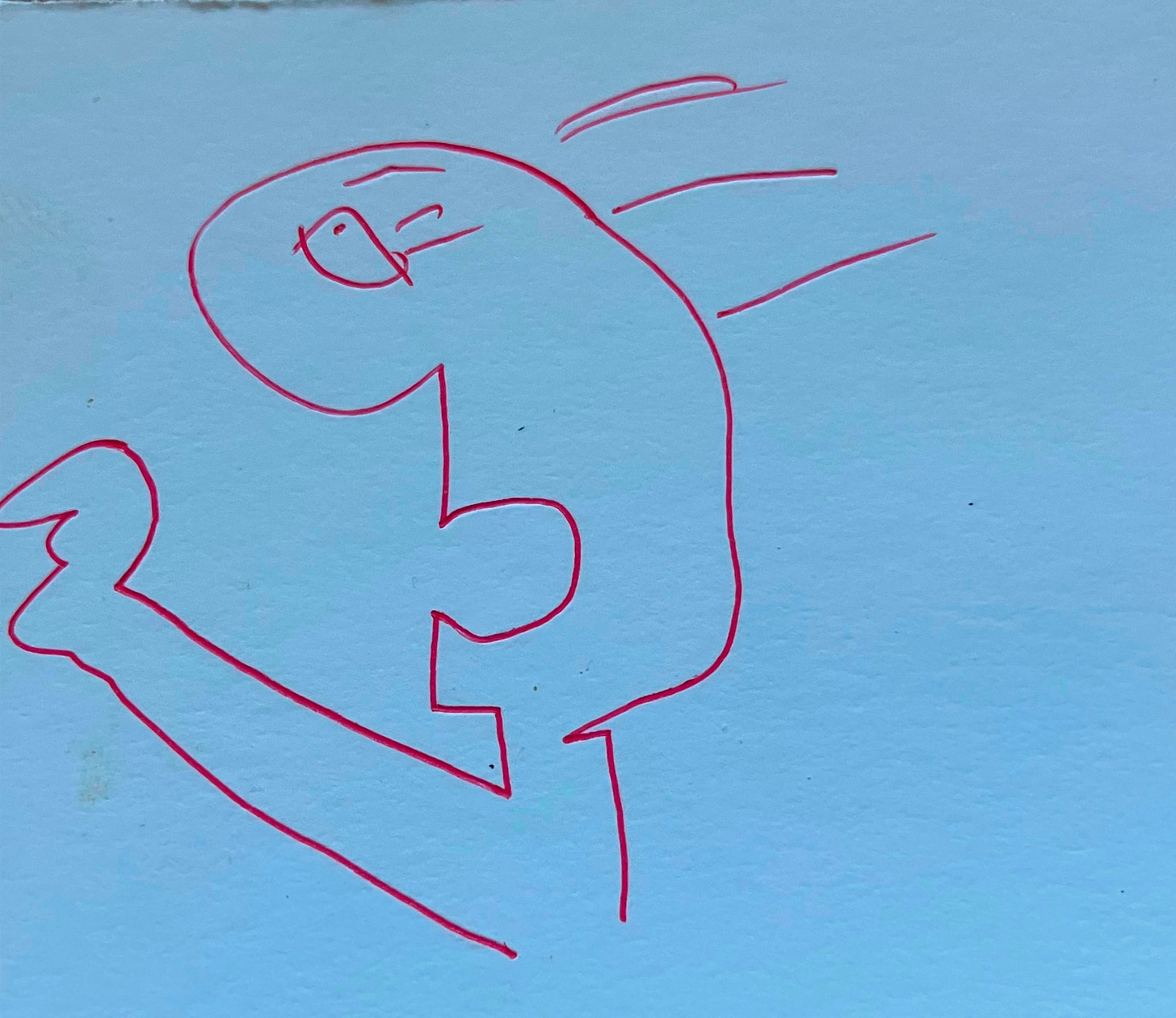 My girlfriend was amazed that, at age 24, I didn’t know the answer. She shouldn’t have been. Obliviousness to visual details is one of my specialties. If quizzed right now, I would score under 50 percent in naming the wall colors of rooms in the house where I’ve lived since 2021. A related deficiency is drawing; the gentleman below—my muse since elementary school, long before I’d seen Picasso’s Guernica—is the only thing I can do in that regard.